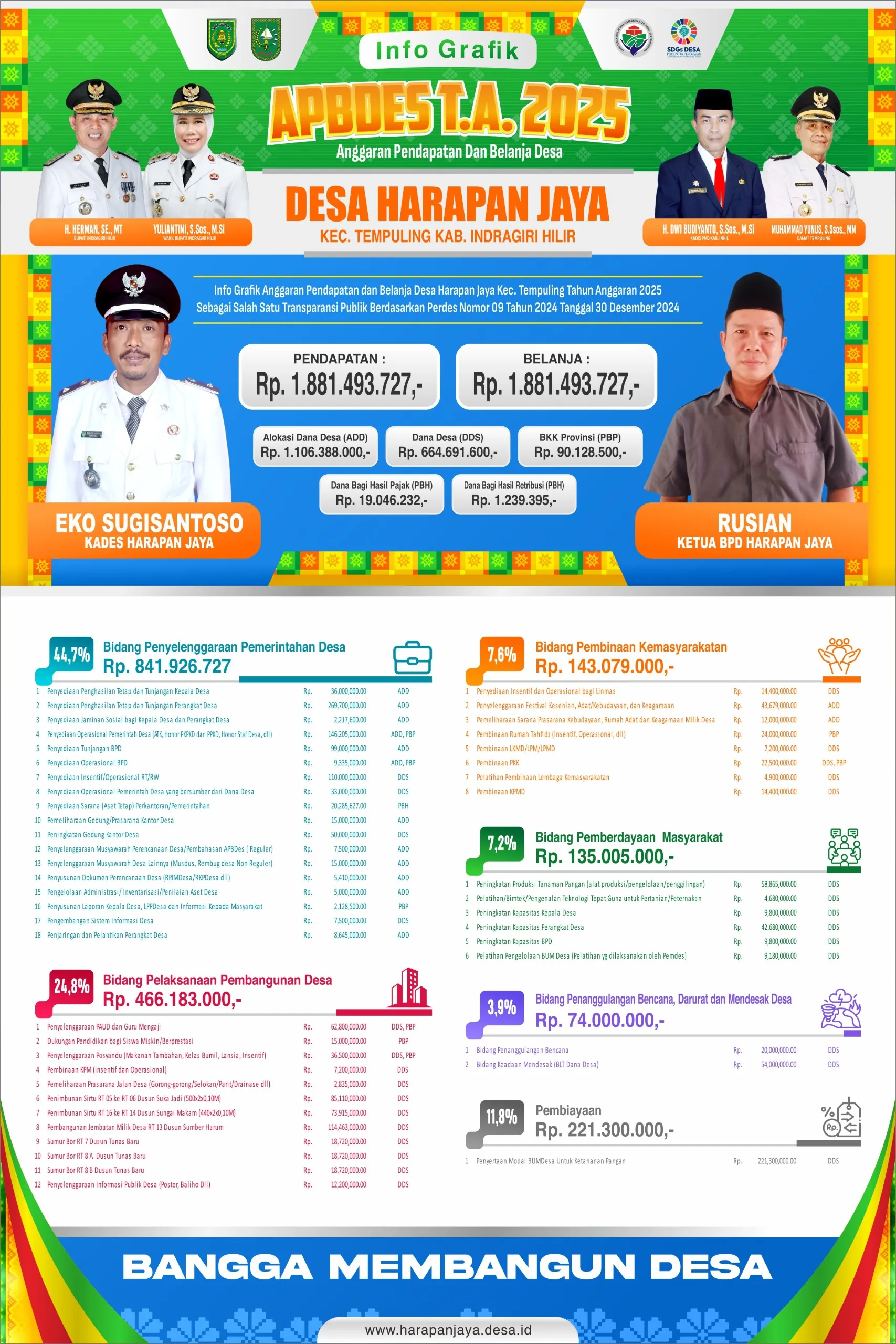 Pemerintah Desa Harapan Jaya berkomitmen penuh melayani masyarakat. Sebagai Desa mandiri, Desa Harapan Jaya terus bertumbuh bersama dengan masyarakat Desa.