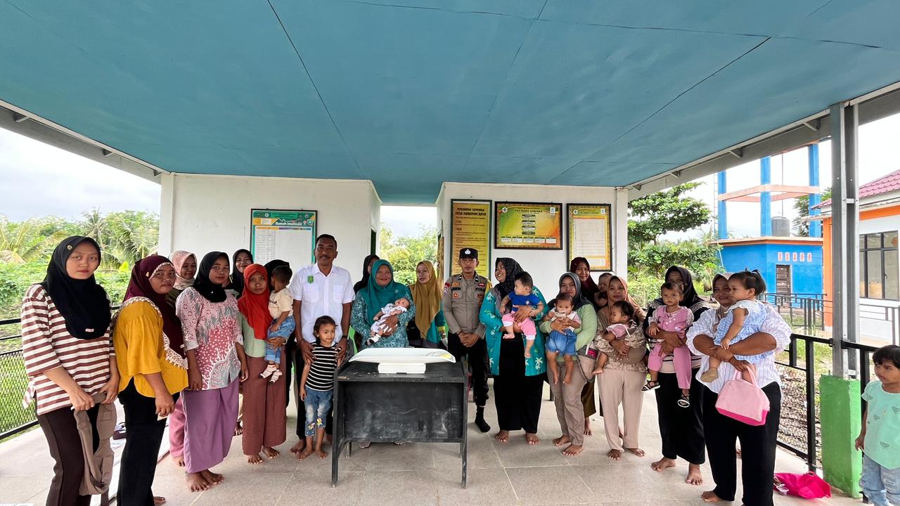 Penimbangan Bayi disaksikan oleh Kepala Desa, TP. PKK, Tenaga Kesehatan, Bhabinkamtibmas dan Sekretaris Desa