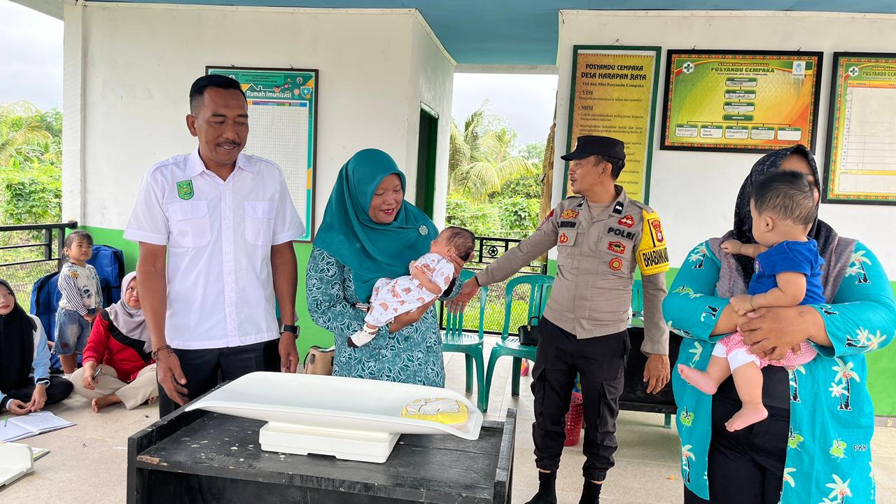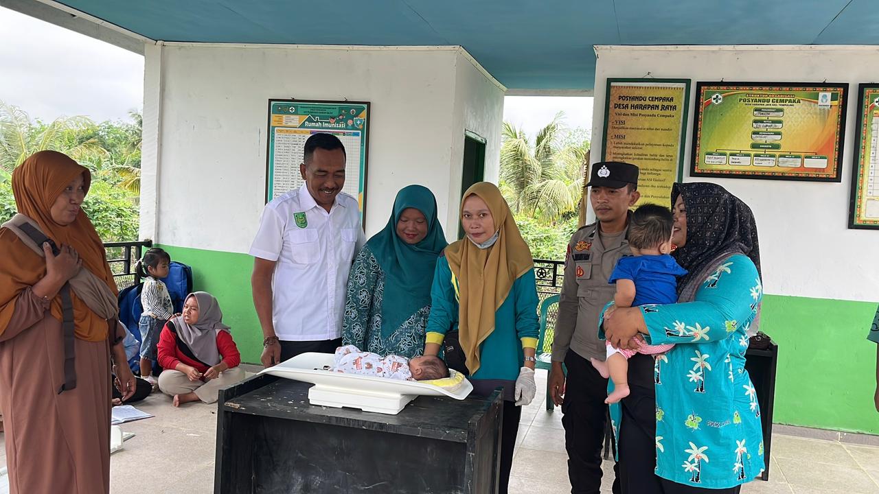 Harapan Jaya – Kegiatan ini dilaksanakan berdasarkan Surat Edaran Bupati Indragiri Hilir Nomor : 100.3.4/DKP2KB-KESMAS/388/IV/2026 Tentang Pelaksanaan Penimbangan dan Pengukuran Intervensi Serentak Pencegahan Stunting Bulan April Tahun 2026, dilaksanakan di Posyandu Cempaka Dusun Suka Jadi Desa Harapan Jaya (15/04/2025). Kegiatan ini dihadiri langsung oleh Kepala Desa Harapan Jaya, TP. PKK, Bhabinkamtibmas dan Sekretaris Desa